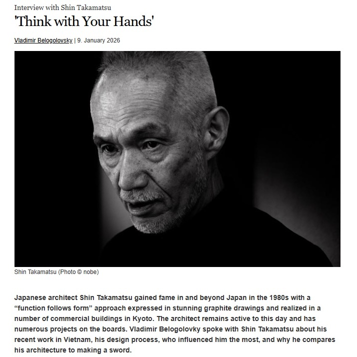 この度、高松伸がニューヨーク在住のキュレター、ウラジミール・ベロゴロフキー氏から受けたインタビュー映像が‘Think with Your Hands’ – Interview with Shin Takamatsuで公開されています。建築家を志すきっかけとなった出来事や初期の建築のエピソード、近年の海外での建築、設計プロセス、そして最も影響を受けた人々など、大変興味深い内容となっております。